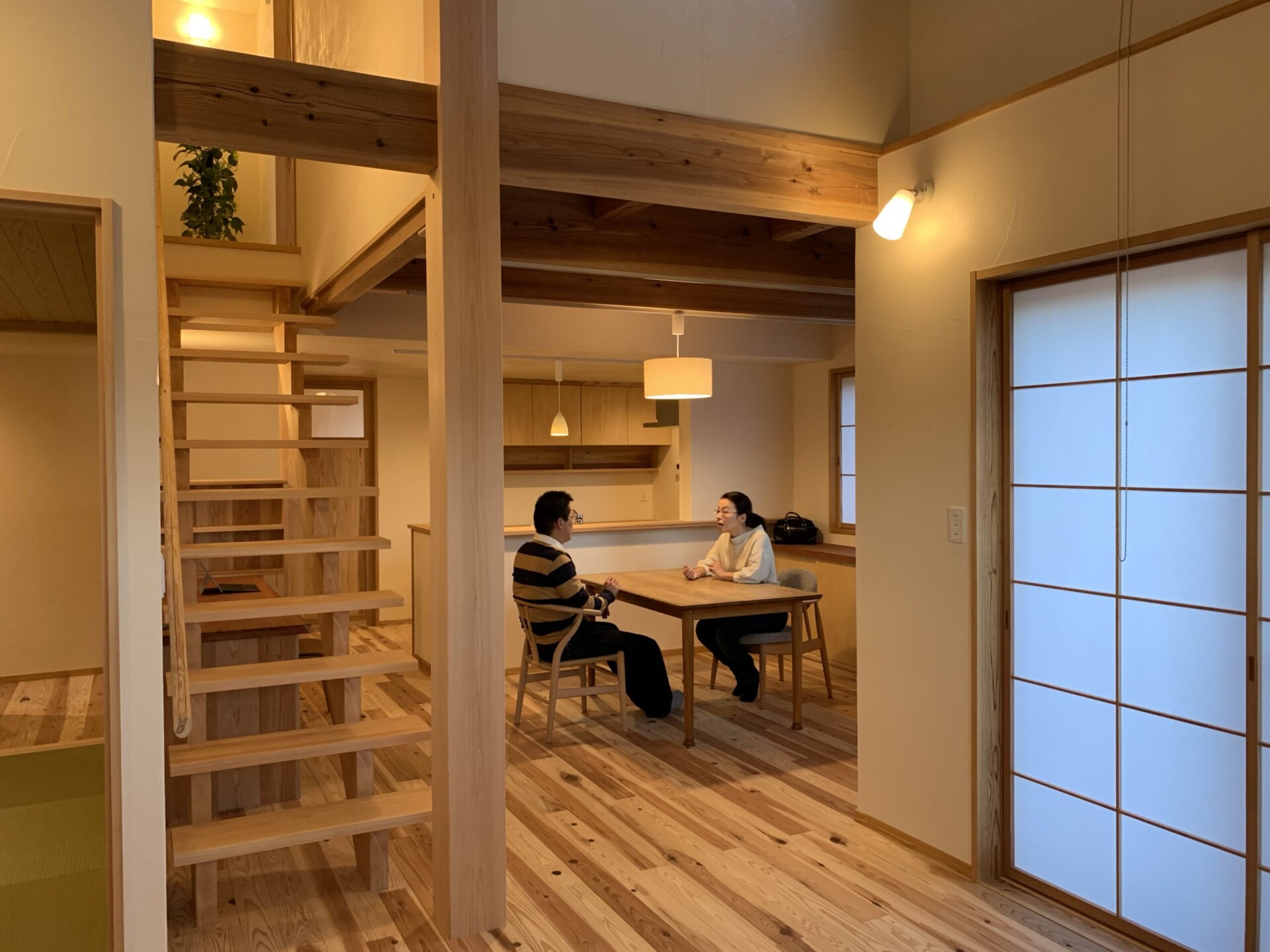 提案してもらった薪ストーブも、入れてよかったです。薪ストーブの温かさが杉の床にも伝わり、心地いいです。薪ストーブについて、初めての扱いなので、最初は少し不安もありましたが、夫婦ふたりとも薪ストーブの木をくべることが毎シーズン冬の季節の楽しみになりました。