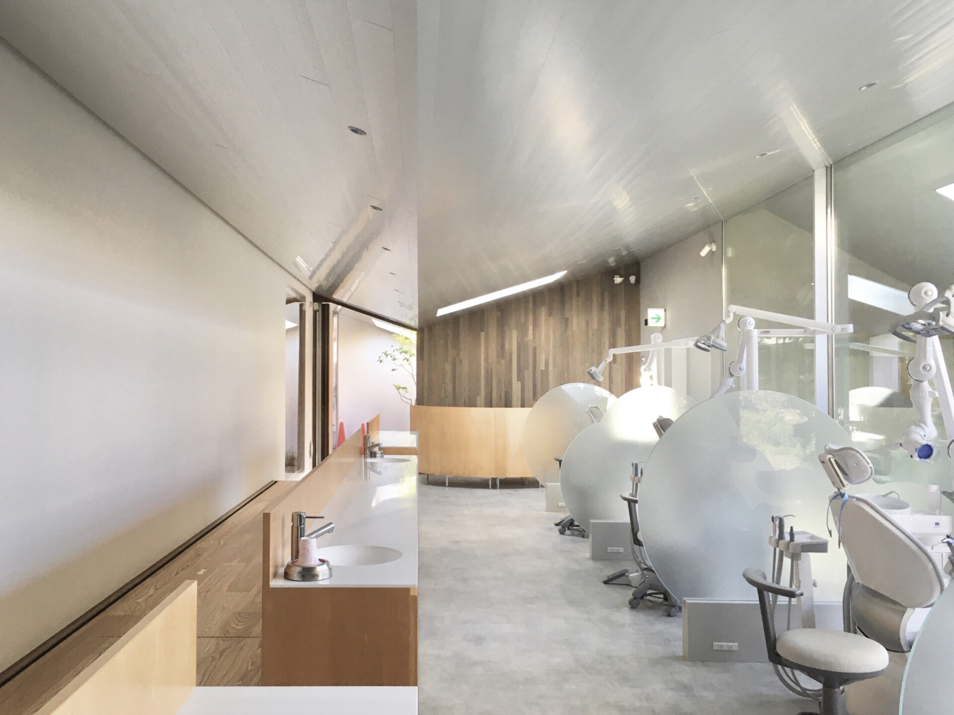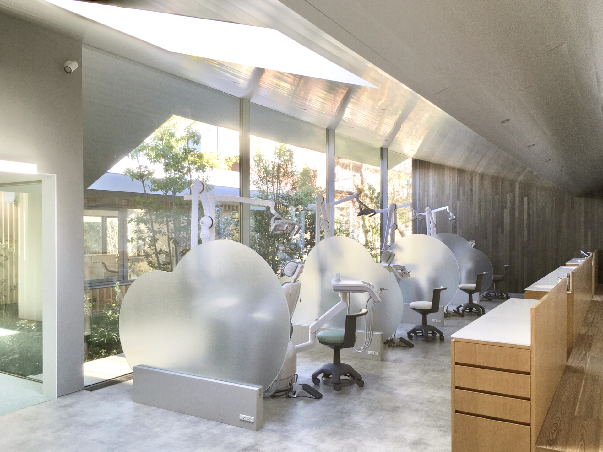 屋根の起伏は大きさの異なる場所をつくり、天井面が移ろいゆく光や色とりどりの素材を映し込んで、診療に訪れた人々の束の間のひと時を彩っている。(山下貴成建築設計事務所 / 山下貴成)