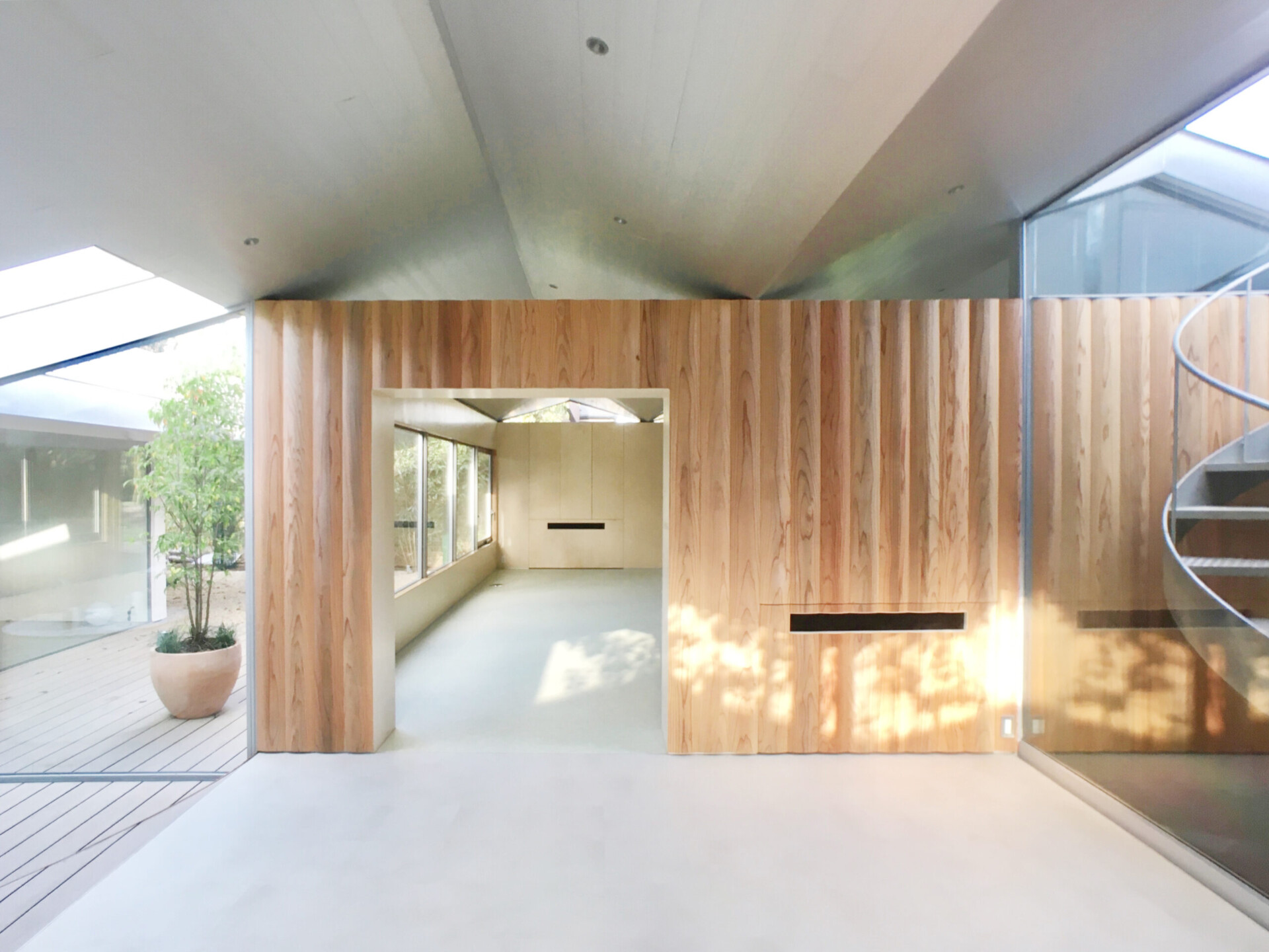 敷地には古くからケヤキが生い茂る森があり、緑豊かな環境の中にクライアント家族の住宅と歯科医院が庭を共有するように建っていた。新たにアネックスが建つと庭を囲む配置関係になるため、住まいへのプライバシーに配慮しながら壁をバラバラと配置し、緑の環境が壁の合間から入り込んでくる建物を考えた。