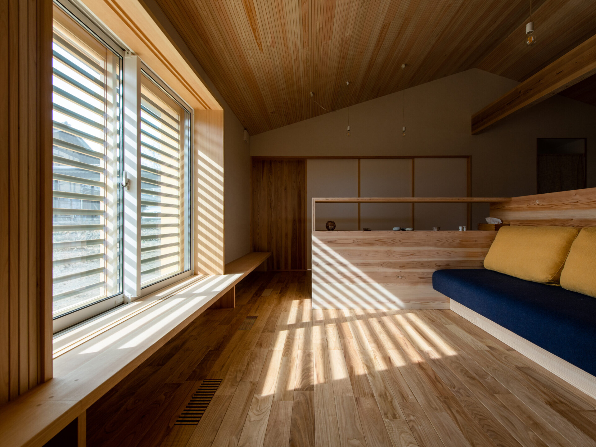 細かなスリットが入っていることで、空間にハリが出て、ぐっと引き締まった印象に。