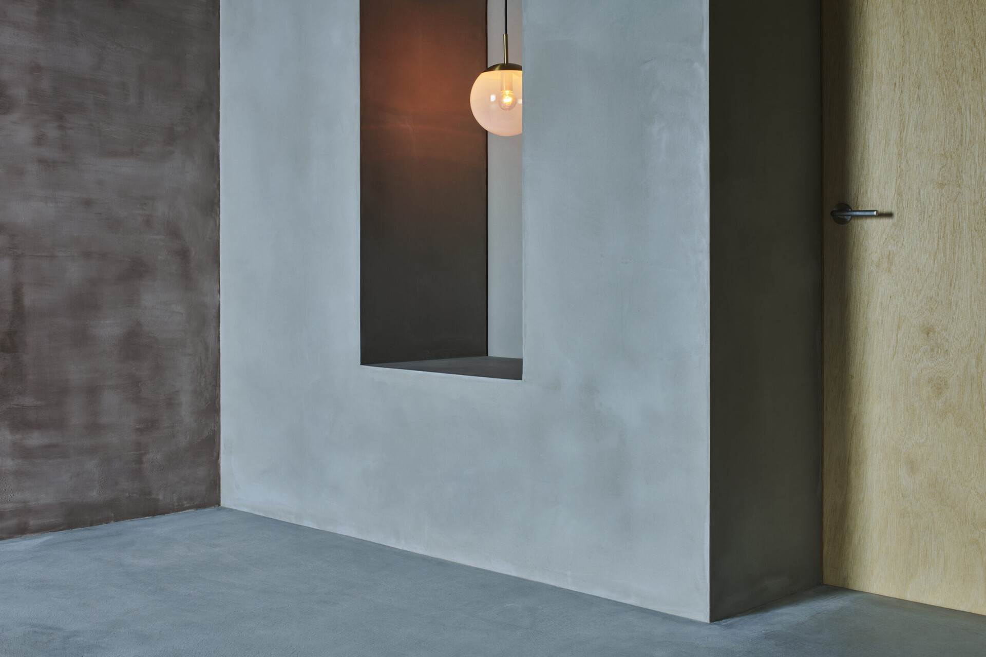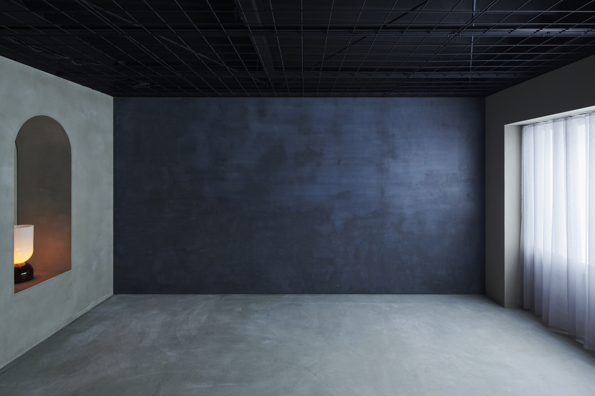 3.4階はスチール素地の支柱を効率よく並べ、5階はそれぞれの壁に異なった左官仕上げを与えることで、様々な印象の写真を取ることを可能とした。