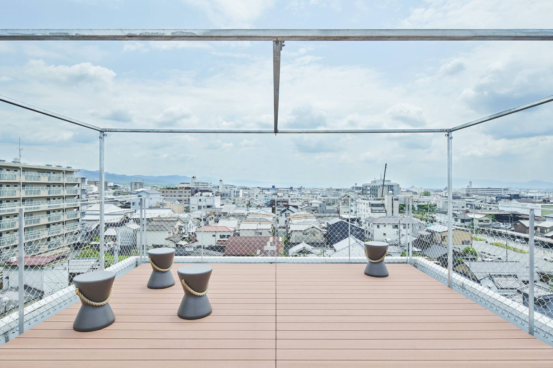 屋上からは、結ぶべき焦点は無いが、まだまだ余白の残る奈良の風景をぼんやりと眺めることができる。