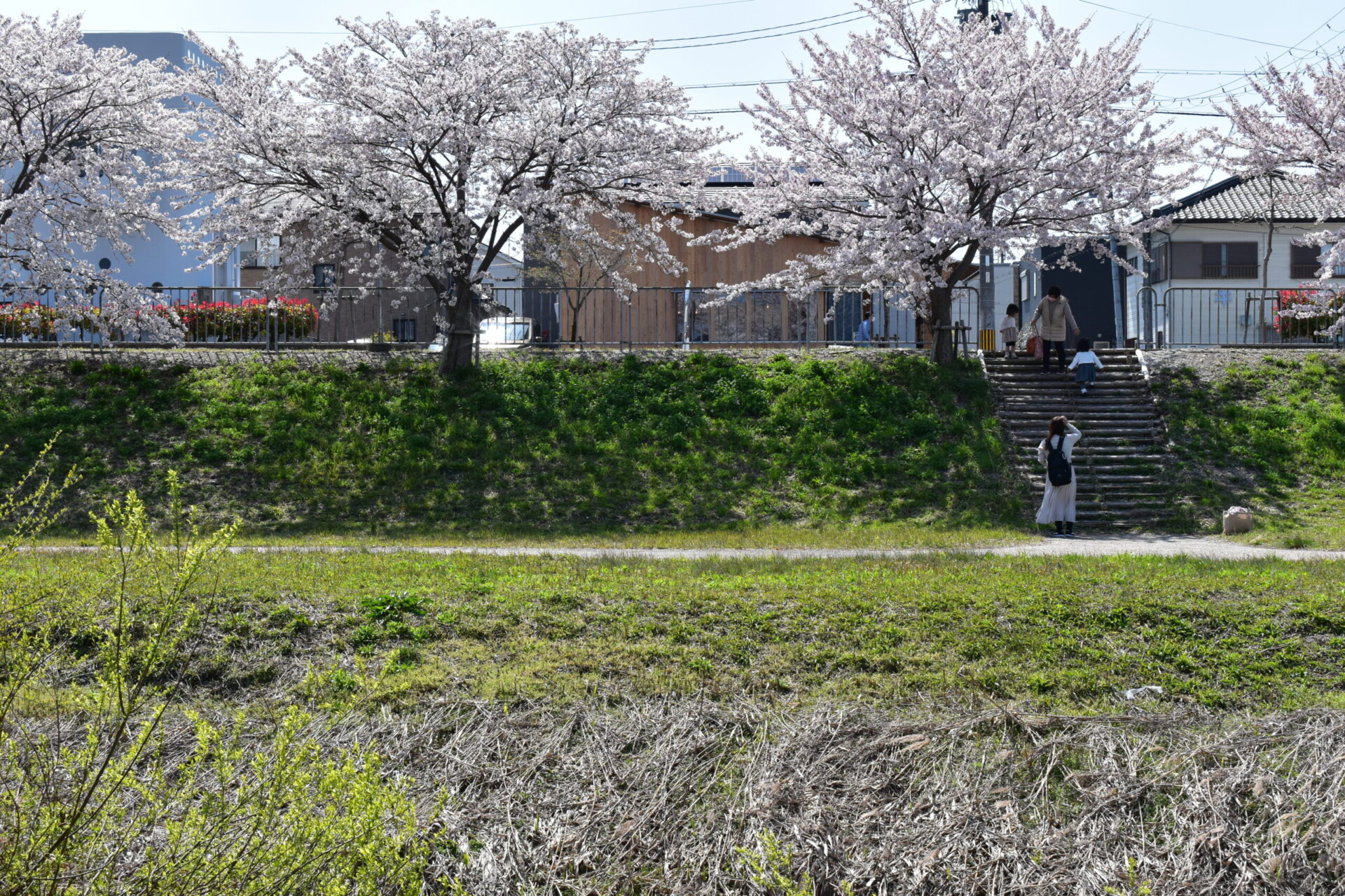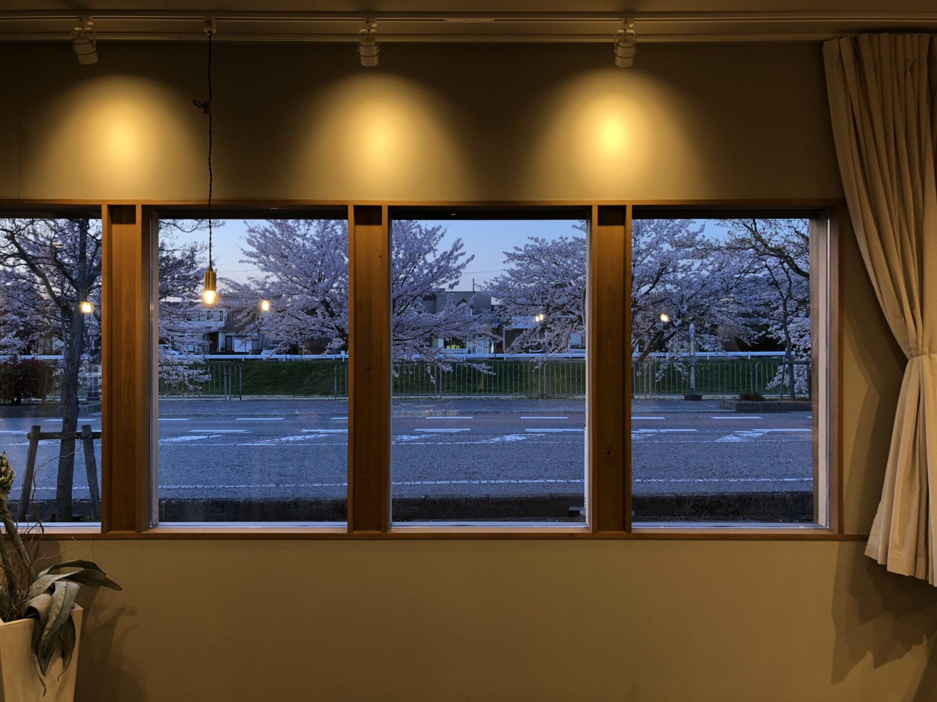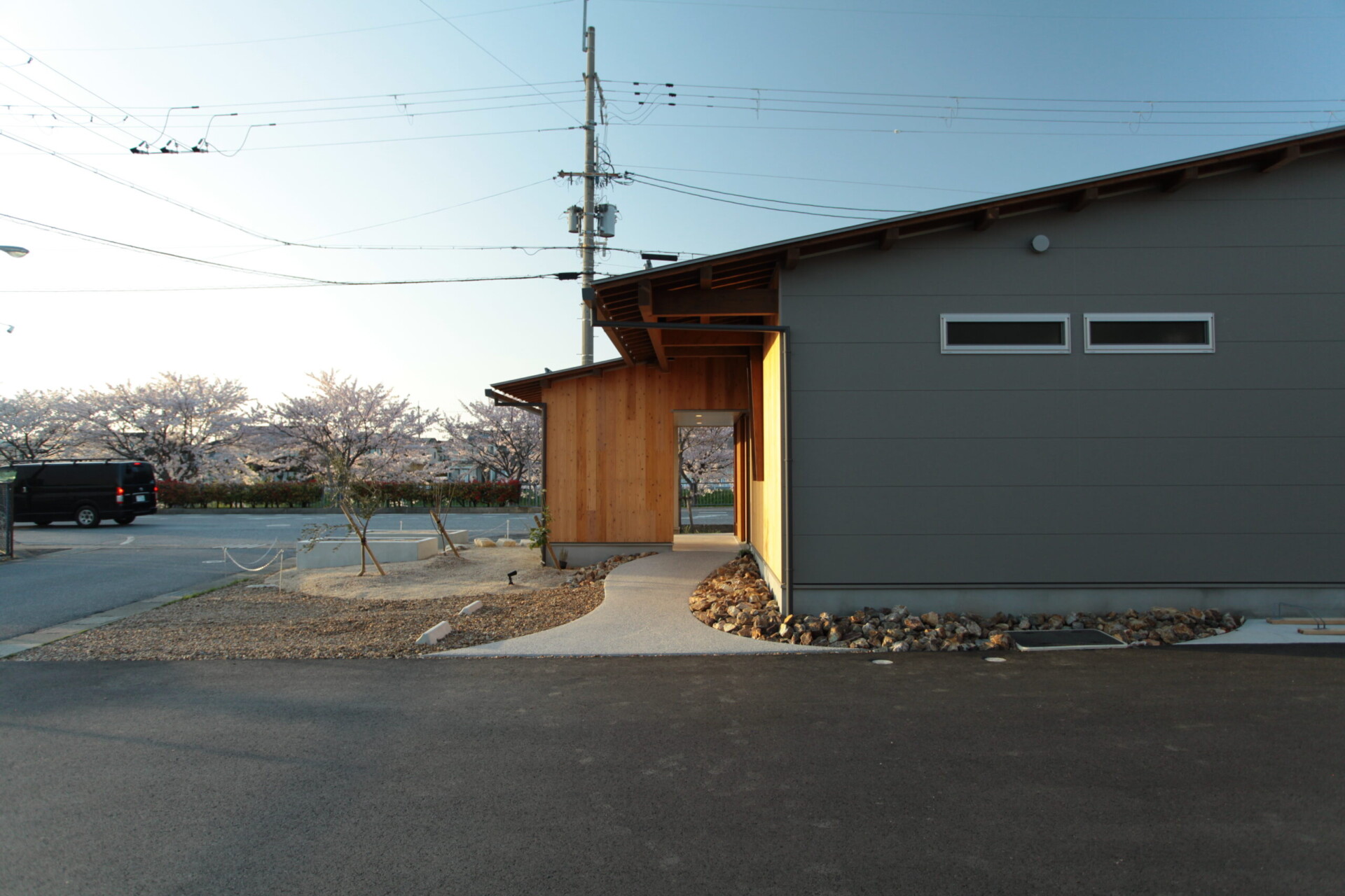 建築場所は琵琶湖岸からほど近い一級河川である長浜新川沿いの桜が立ち並ぶロケーションを目の前にして、この景観を借景にすべく、意識が外へ向かって広がるように開口部を配置すると同時に、風の通りを考えて壁の幅と位置を調整して、「囲われながら外に開く」ことを念頭に基本設計をした。