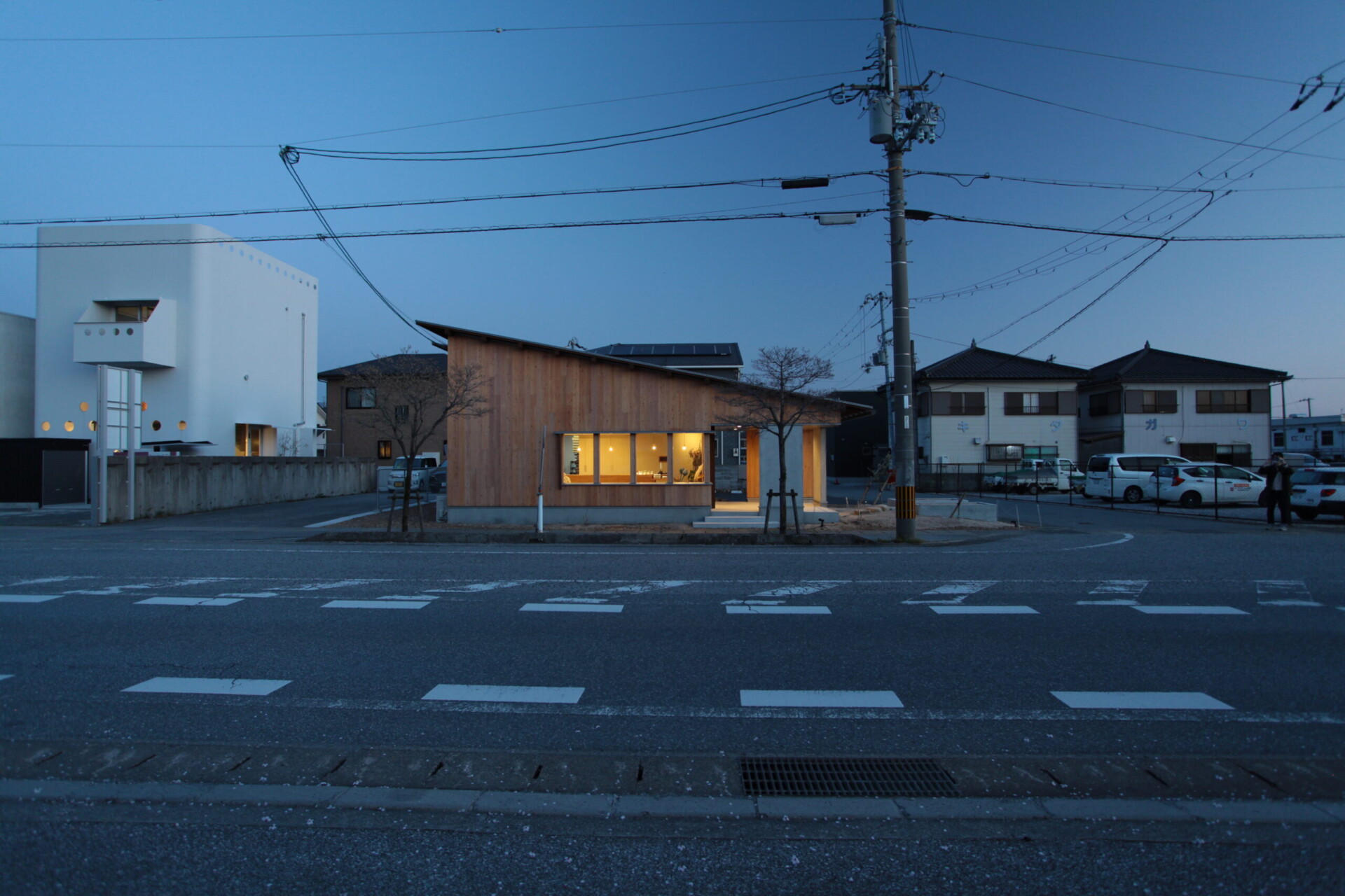 四季を通して様々な表情の街並みを映すこの場所で、軒に守られながら雨の日や雪の日も長浜の朝へと送り出してくれる、そんなパン屋さんとなった。(玄正建築設計事務所/玄正崇)