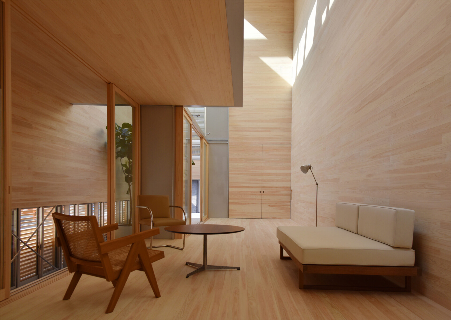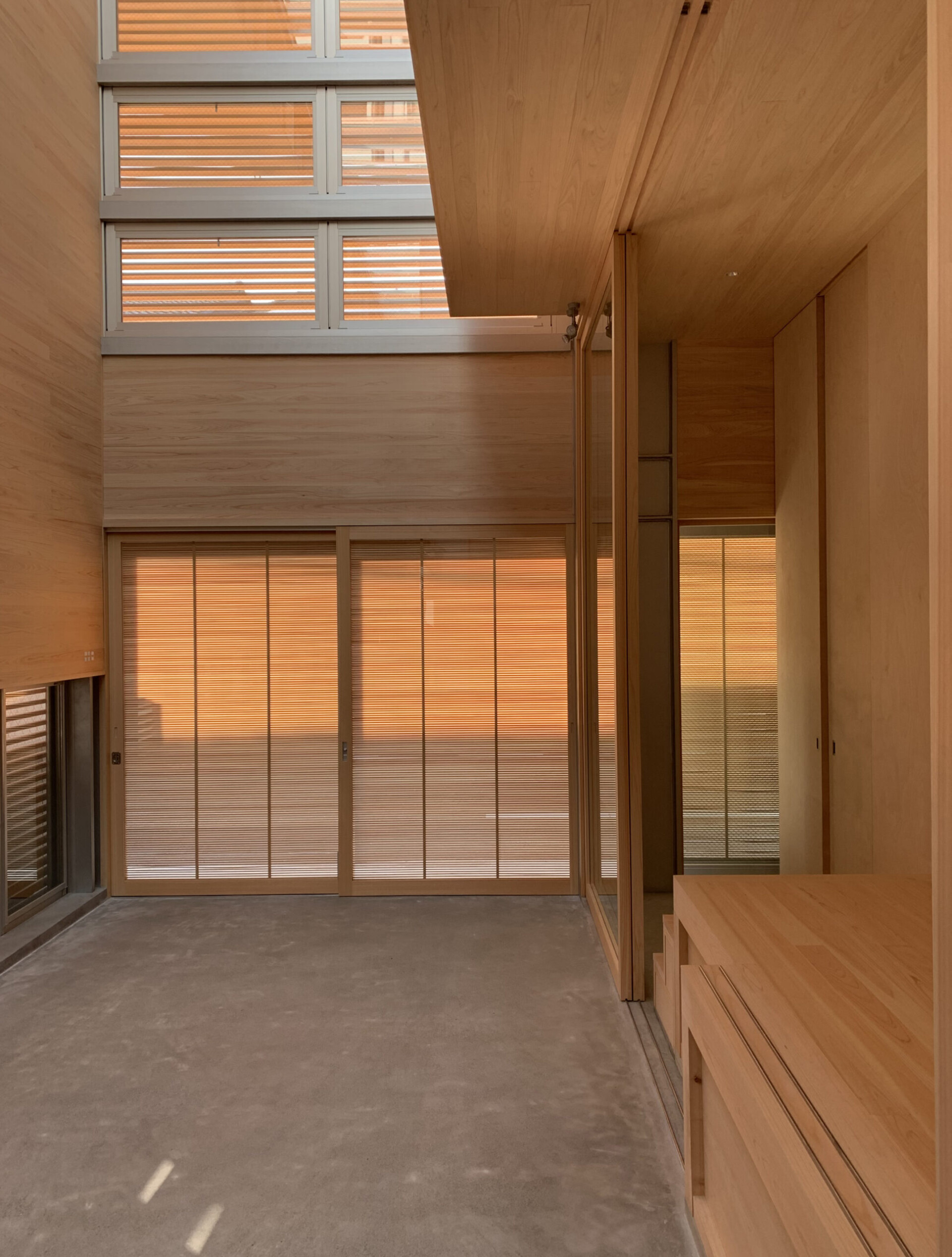 周辺の建物より少し背を高くし、そこから光や風といった自然環境を取り入れる。南に面した吹抜空間である通り庭全体が環境装置となり、夏は風が流れ、冬は陽だまりのできる、1年を通して快適に過ごせられる、明るい屋外のような環境をつくっている。