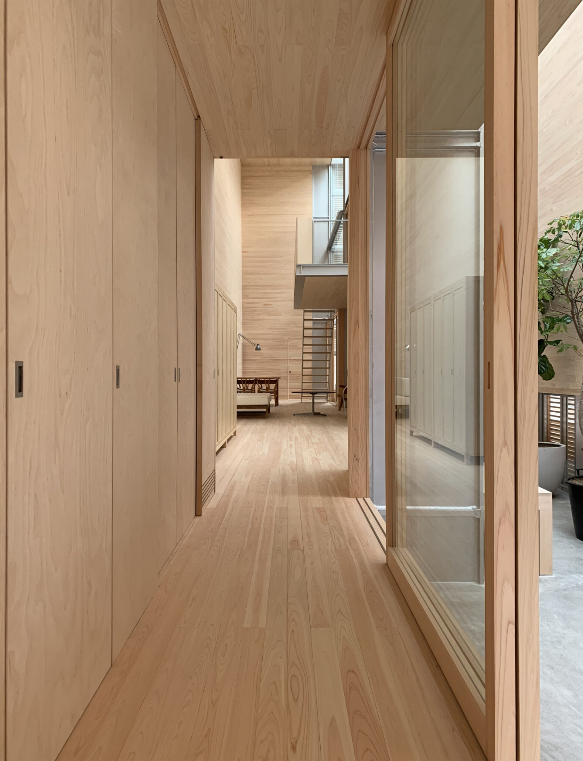 全ての部屋が通り庭に面しているので、建物のどこにいても、通りからのにぎわいや季節の移ろいを感じることができる。室内とのあいだの建具を開け放てば、全体をひとつのおおきなリビングとして使うこともできる。