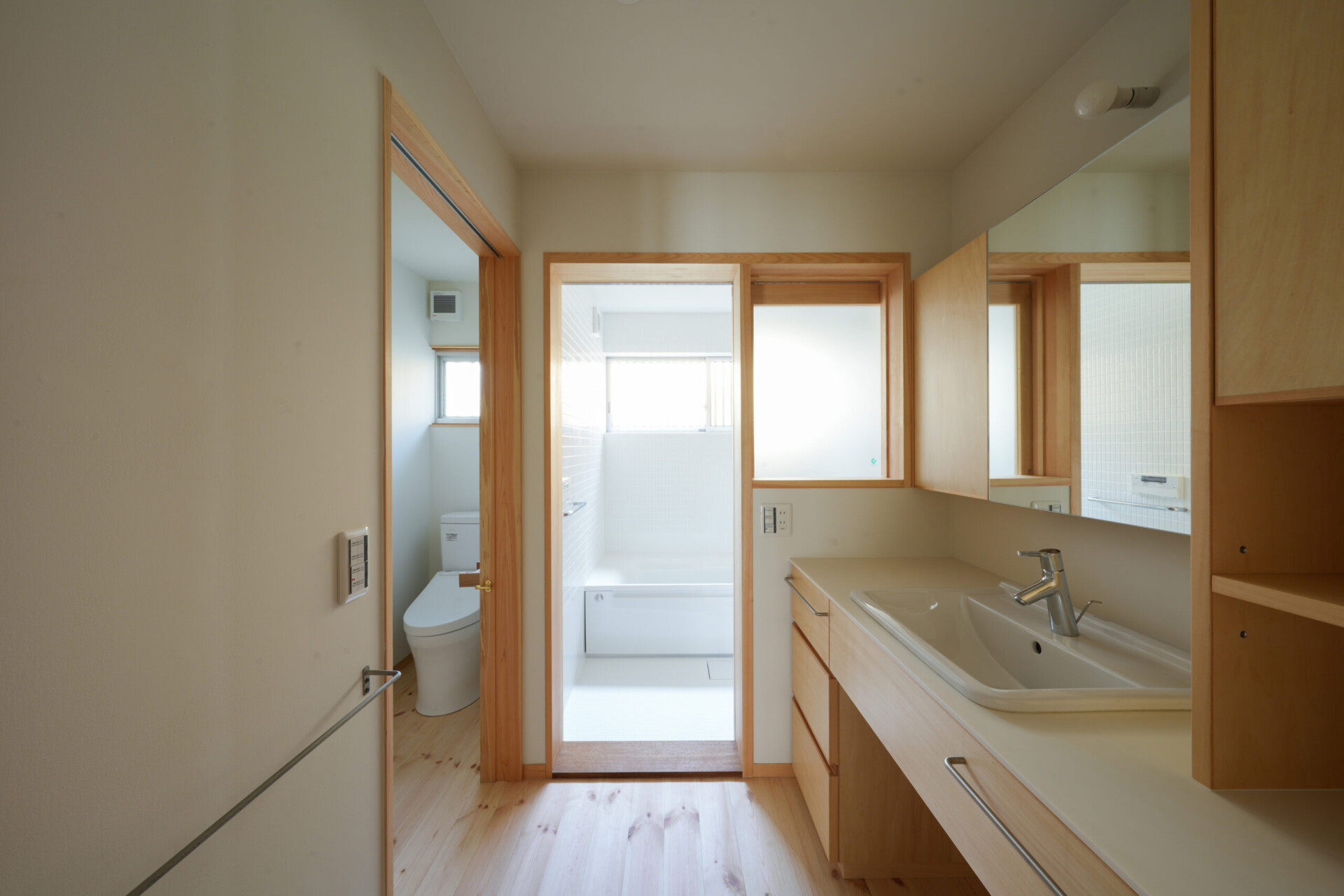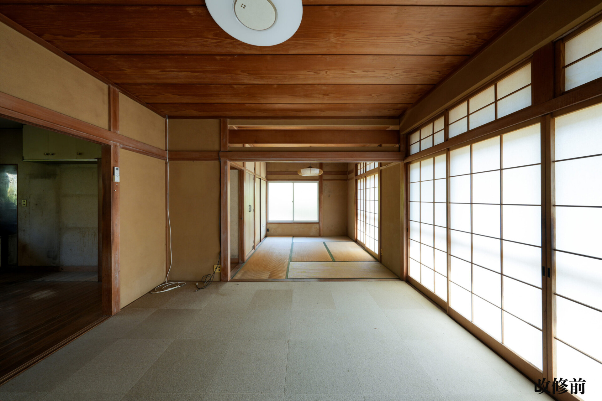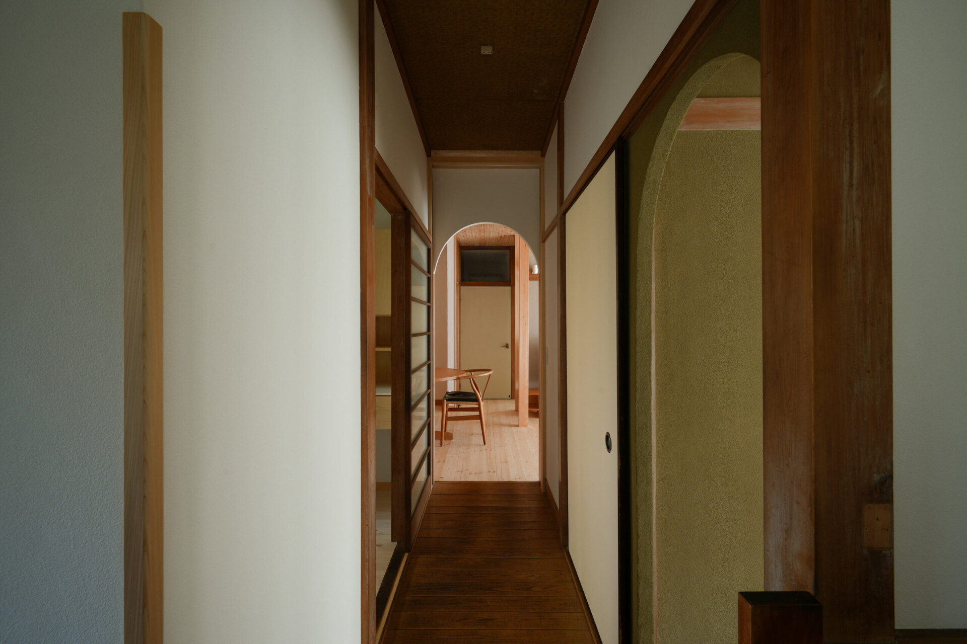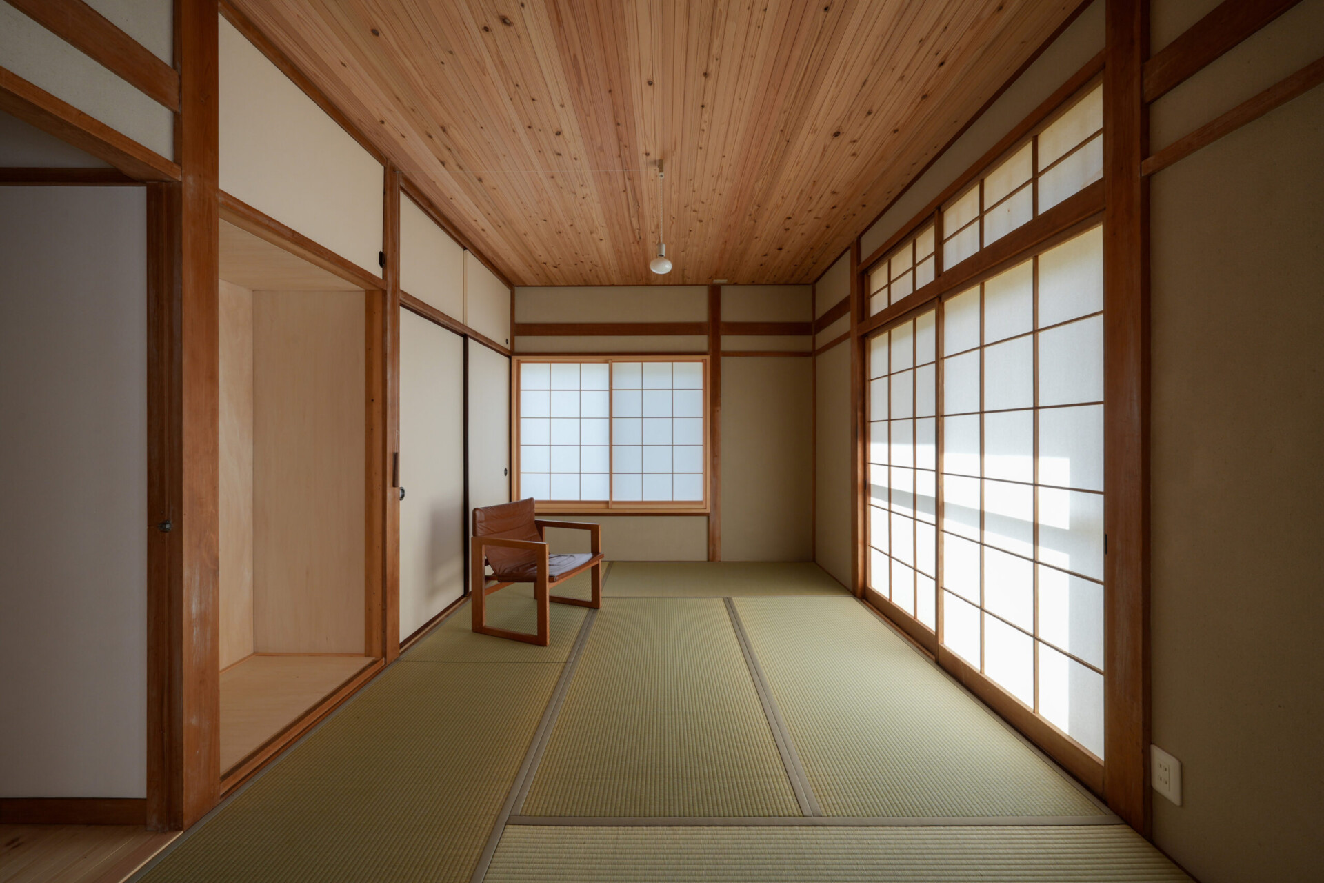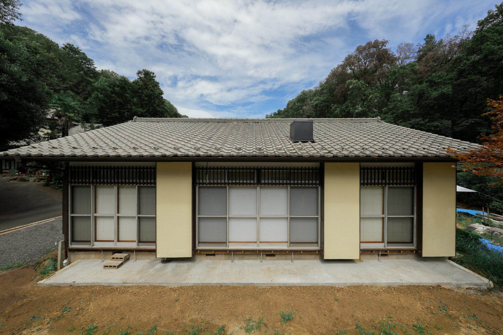 緑豊かな谷あいに建つ築50年の和風住宅。造園家の若い家族が、この古き良さを活かしながら自分達らしい暮らしを楽しむためのリノベーション。古さから構造、設備、断熱、遮熱を考えることから計画が始まる。構造はフラット35リノベ耐震評価基準をもとに整えることができた。設備は老朽化のために水回り全てを改修する。既存の床・壁・天井には断熱材が入っていないため、室内改修工事の範囲で新たに設ける。断熱・遮熱の弱点となる開口部、この家のほとんどがアルミサッシ+内障子となっていたので、断熱・遮熱効果を期待して、このまま生かすこととした。建物の性能を整えながら新しい暮らしを支える建築空間を考える。