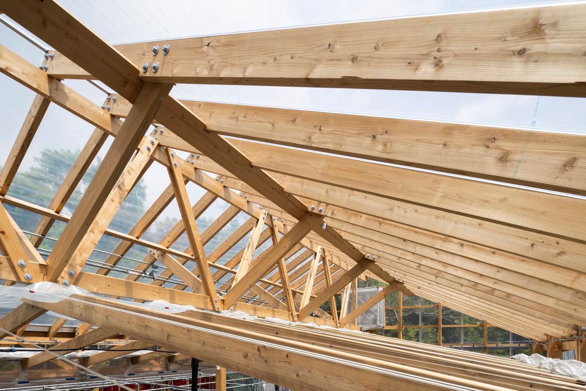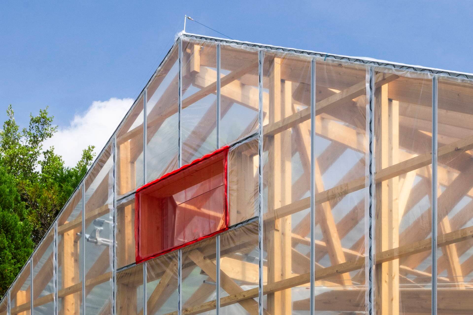 国産木材の通常の製材プロセスにおいて、木取りにより建材から外れてしまう木材を活用し、構造モジュールをデザインしました。従来の輸入金属による鋼製ハウスと同等価格・同等強度であるのに対して、国産材による優れた性能を発揮します。また施工はプレファブ化され、地域材を活用することで輸送エネルギーを抑えるのみでなく、地域の大工たちにより建設、解体後の再構築も可能としています。