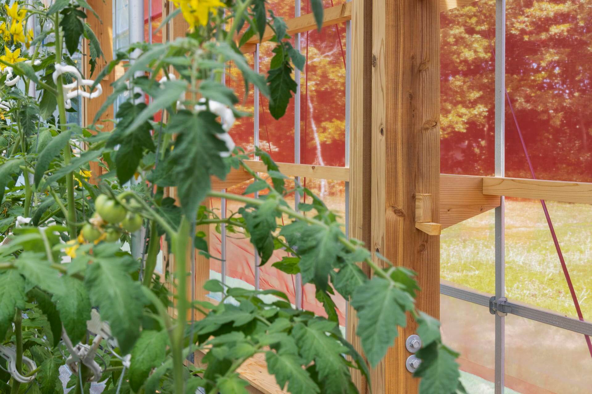 「Carbon Negative Greenhouse(サーキュラー木造温室)」は、未利用木材を活用した木造温室であり、また次世代の木造建築モジュールです。木の持つ調湿性や断熱性を最大限に活かしながら、構造材から仕上げまでを木材で構成。温室として植物を育てることはもちろん、住宅や倉庫、オフィス、ギャラリー空間など多様な空間用途に展開できます。